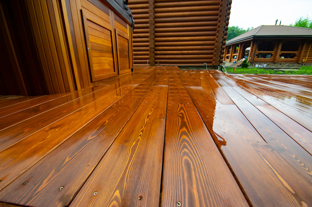 Можно подобрать как бесцветные варианты, так и в оттенках ценных пород дерева. Пропитка наносится в два-три слоя и хорошо проявляет естественную красоту дерева. Но есть одно "но" – недостатки поверхности скрыть не получится. Кроме того, продукт не отличается долгим сроком службы и требует обновления раз в два-три года на горизонтальных поверхностях и раз в четыре-пять лет на вертикальных.