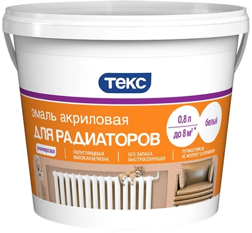Эмаль акриловая для радиаторов белая п/гл0,80л ТЕКС